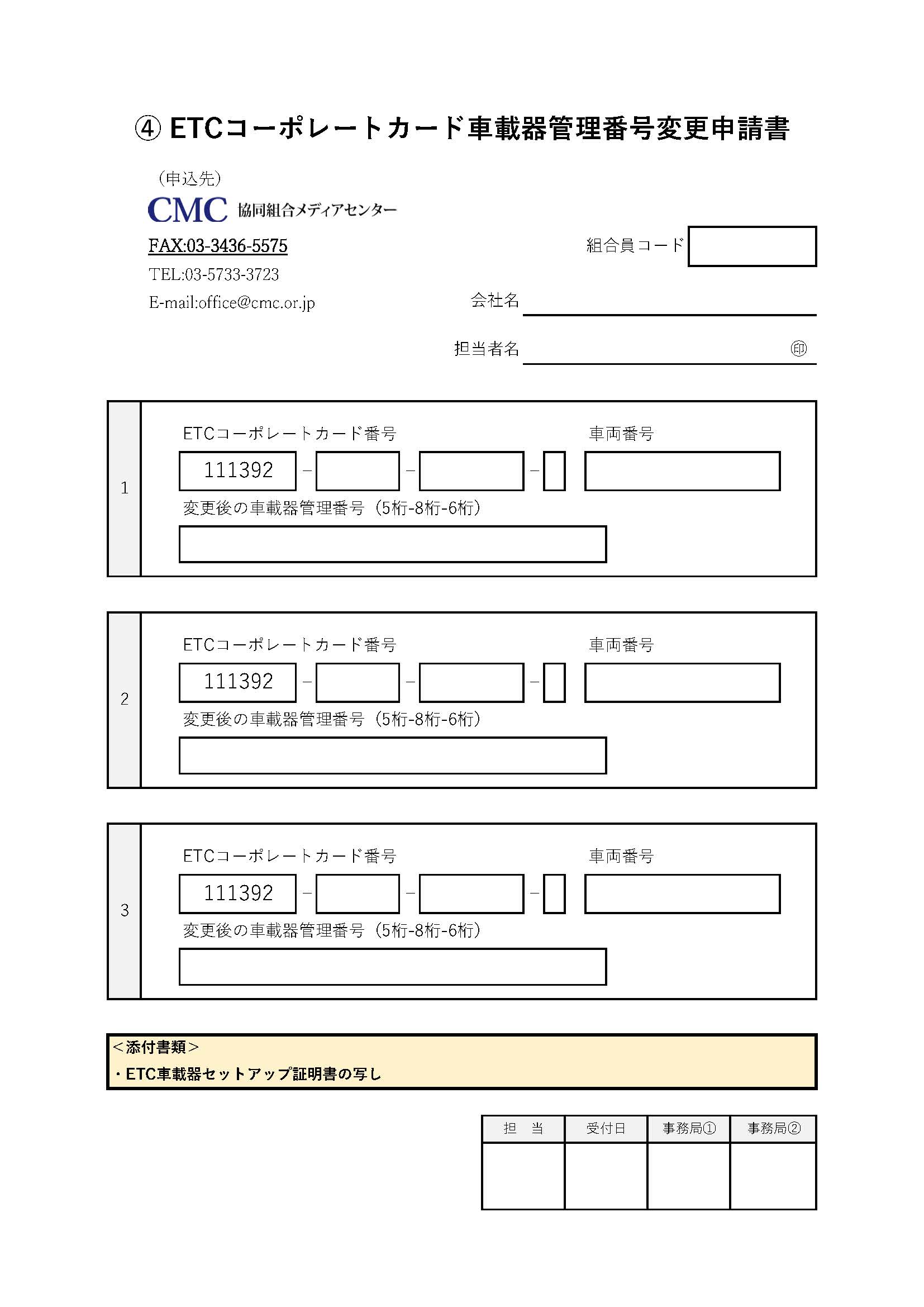 ④ ETCコーポレートカード車載器管理番号変更申請書